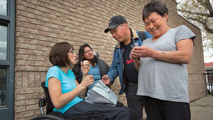 Not many people are willing to snub a 59-year-old woman in a wheelchair – something to Carrielynn’s advantage.