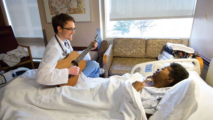 In room 548 of a Memphis, Tennessee, hospital, Charlene recovers from a heart attack and kidney failure. Her doctor enters the room and takes a large, khaki-colored bag off his shoulders, placing it next to her bed.