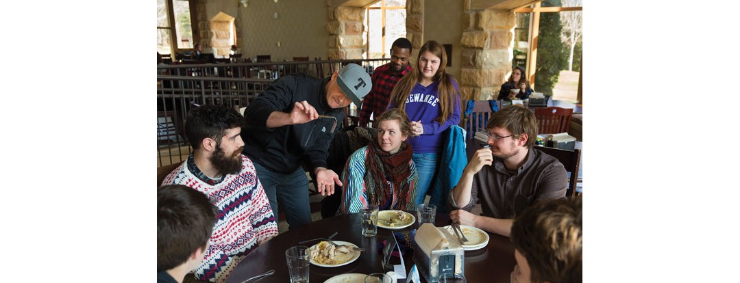 Jim arrives at Sewanee the day of the show, just as the high-ceilinged cafeteria starts to buzz with the lunch crowd.