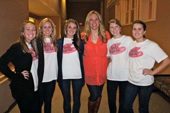 The women contacted the other 8 sororities on campus to announce the meeting, sent out Facebook invitations and spread the word by mouth: friends inviting friends. There were more than 1,000 students invited. “We handed out 500 lollipops attached to cards advertising the event, printed out buttons for girls to wear on their backpacks, stuck balloons up all over campus and laminated posters,” Jan says. “I would hear girls saying, ‘Oh, I’ve heard about this.’ There was a buzz on campus.”