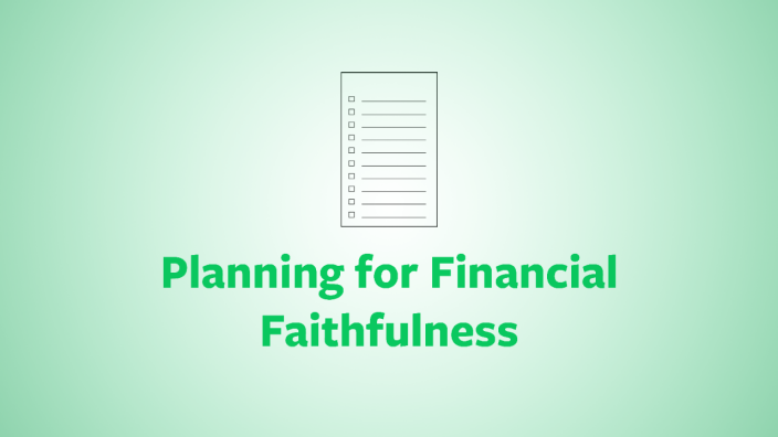 We need to understand biblical truths about money, loving the world, and being a wise steward of our resources. One of the keys to financial faithfulness is having a plan - live today with an eye toward the future.