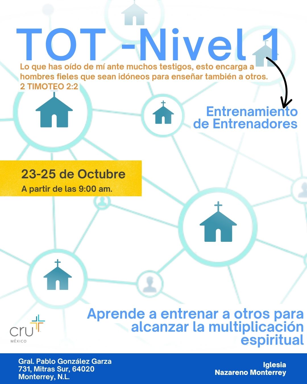 En TOT N1 aprenderas cómo entrenar a otros para iniciar Grupos de multiplicación, que después pueden crecer hasta formar comunidades o iglesias y levantar nuevos líderes desde la cosecha.