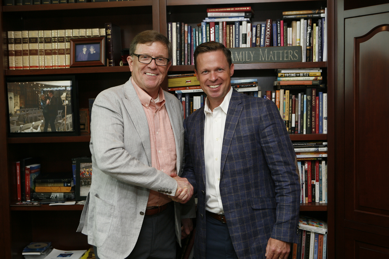 Dennis Rainey (left) welcomes David Robbins (right) as the next president and CEO of FamilyLife.